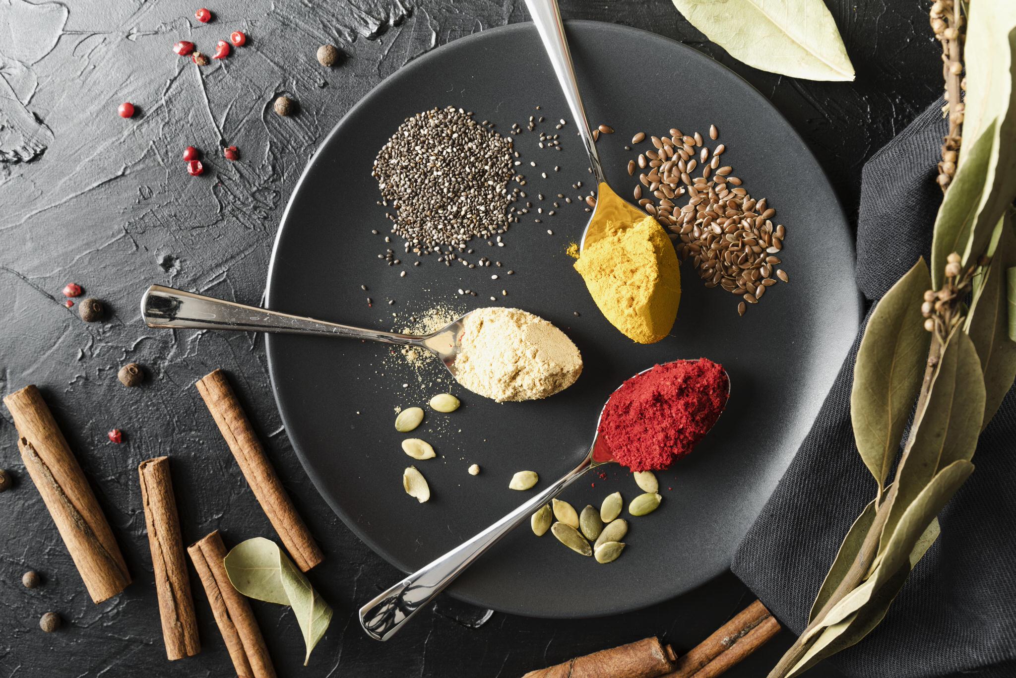 Accueil » Menu » spoons-with-various-condiment-powders-plate